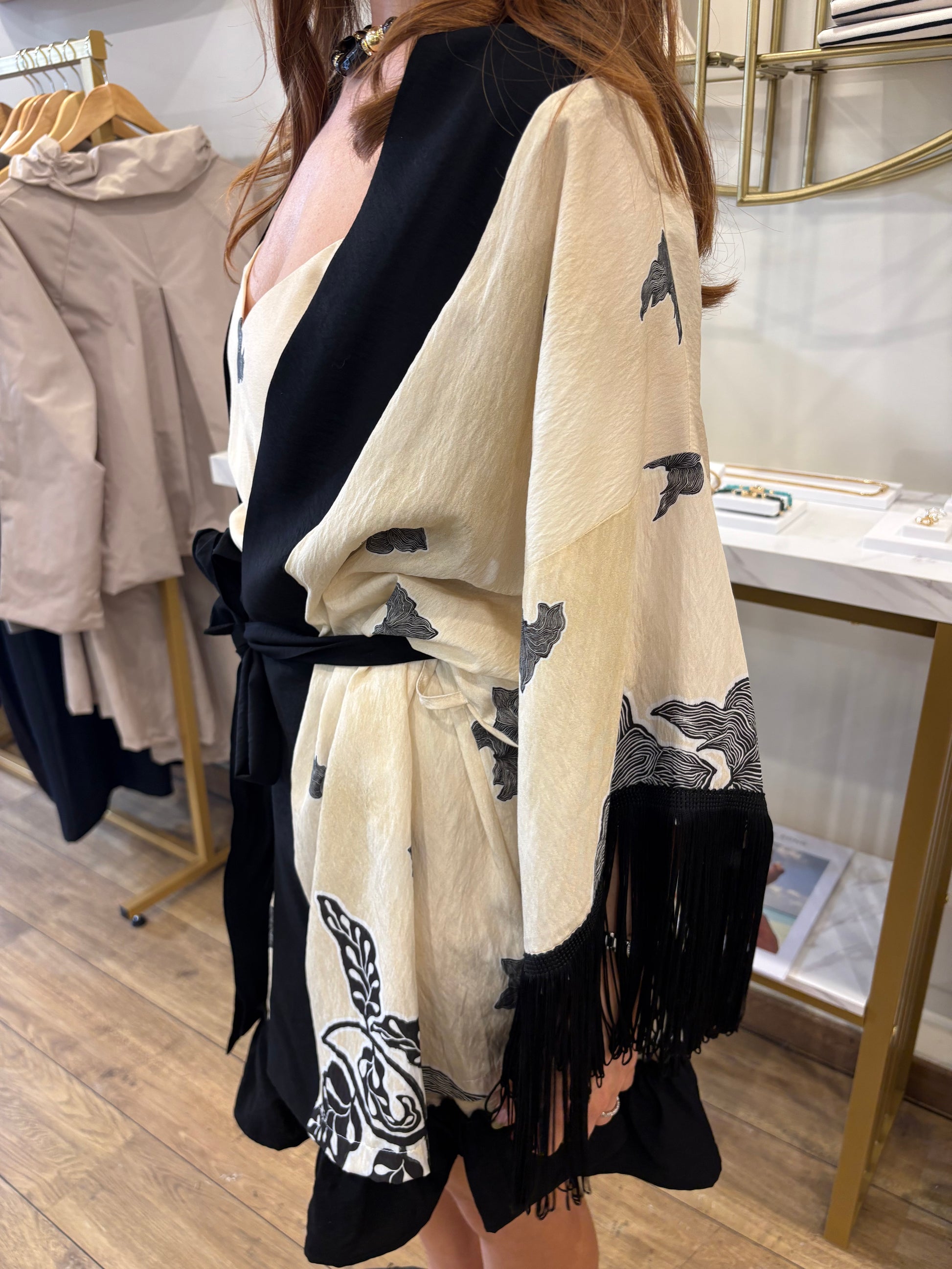 Le kimono Clea de la marque BSB est une pièce forte et élégante, parfaite pour sublimer une tenue en un instant. Son contraste noir et écru lui donne une allure sophistiquée et intemporelle.