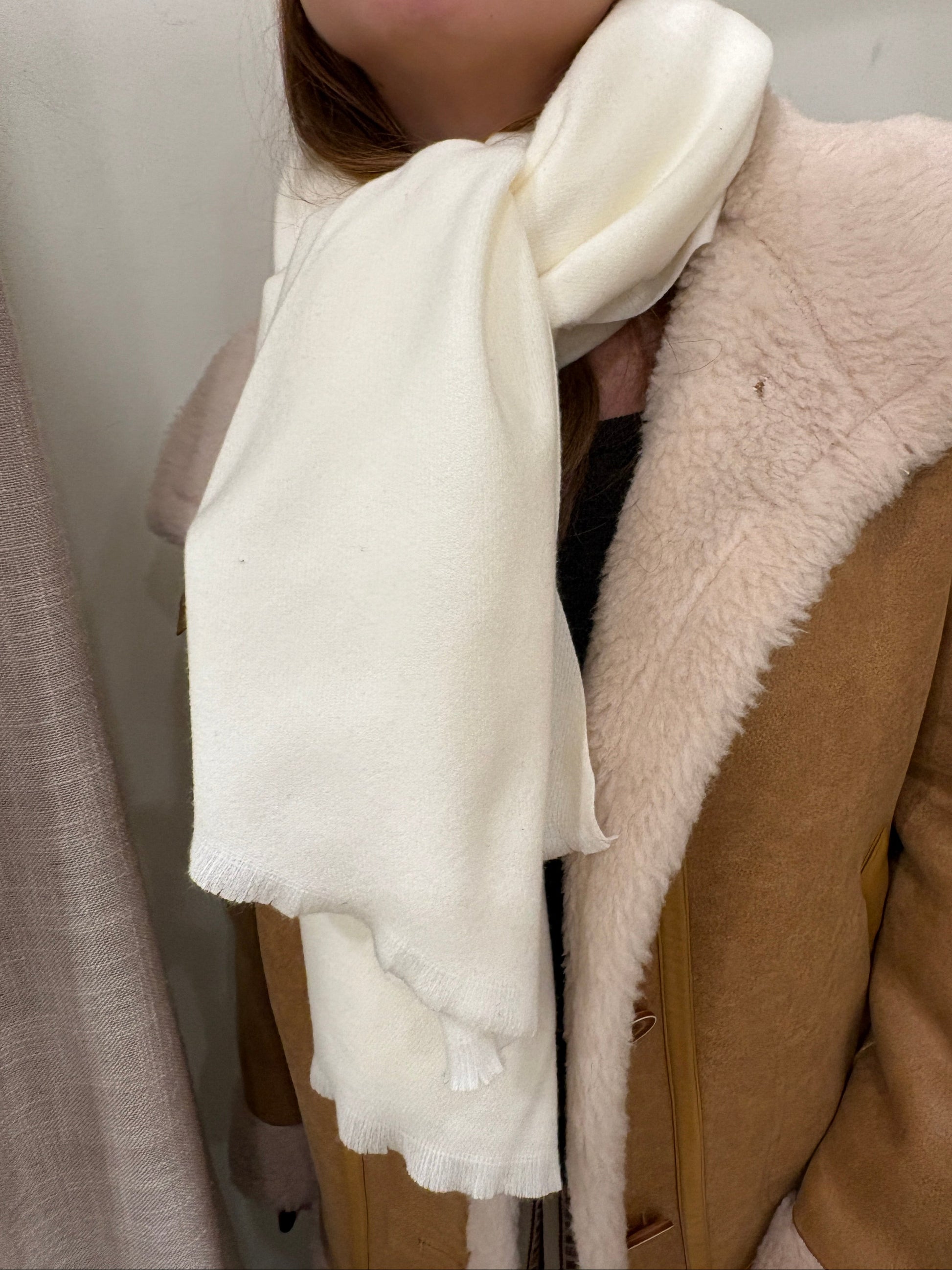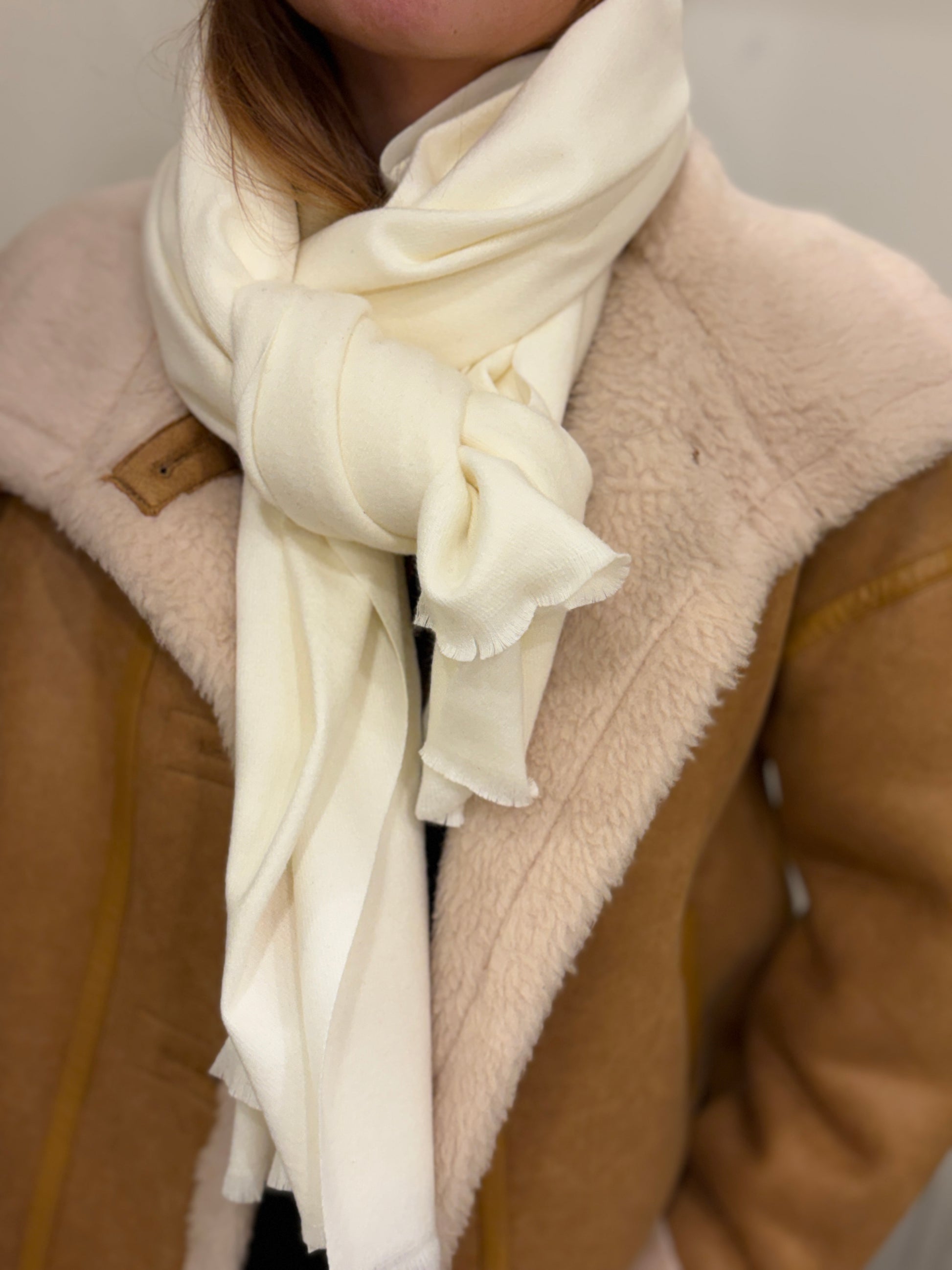Sa couleur écru illumine le visage et s’associe facilement à tous les manteaux, du plus classique au plus casual. On la porte en gros tour autour du cou pour un look cosy et chic tout au long de la saison.