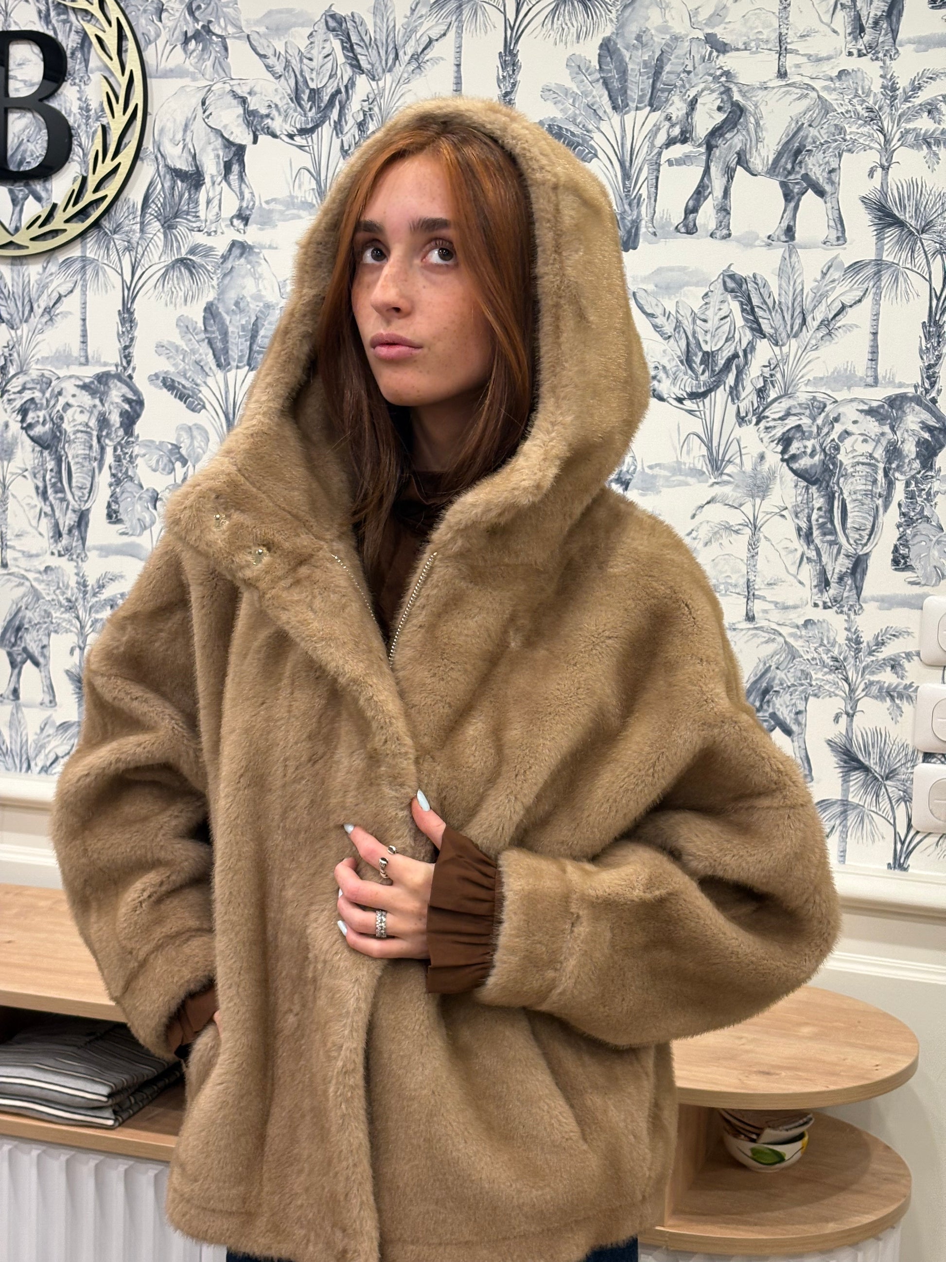 Une veste effet fourrure au volume généreux, pensée pour conjuguer confort et élégance. Sa matière douce et enveloppante apporte chaleur et raffinement à toutes les silhouettes.