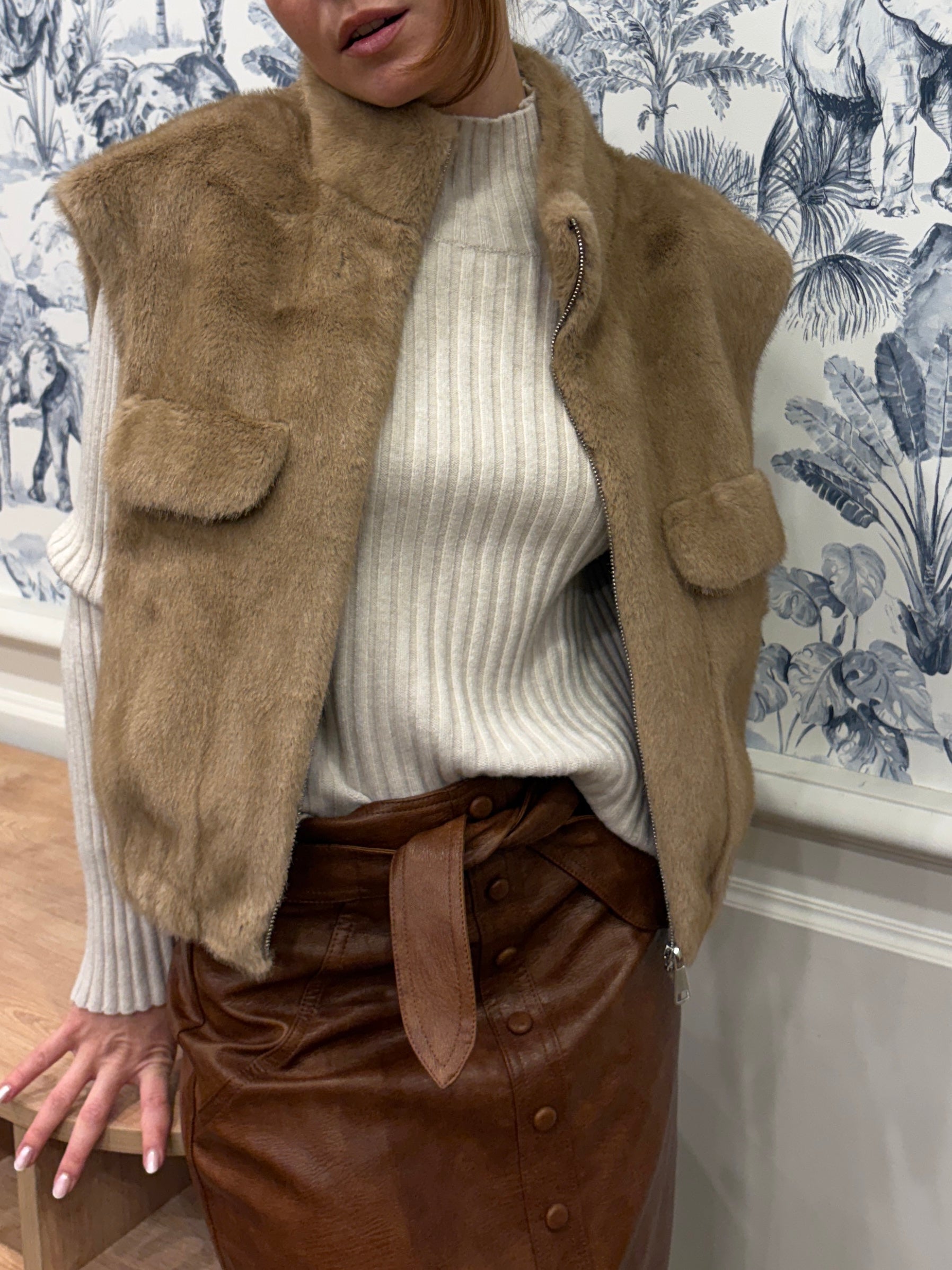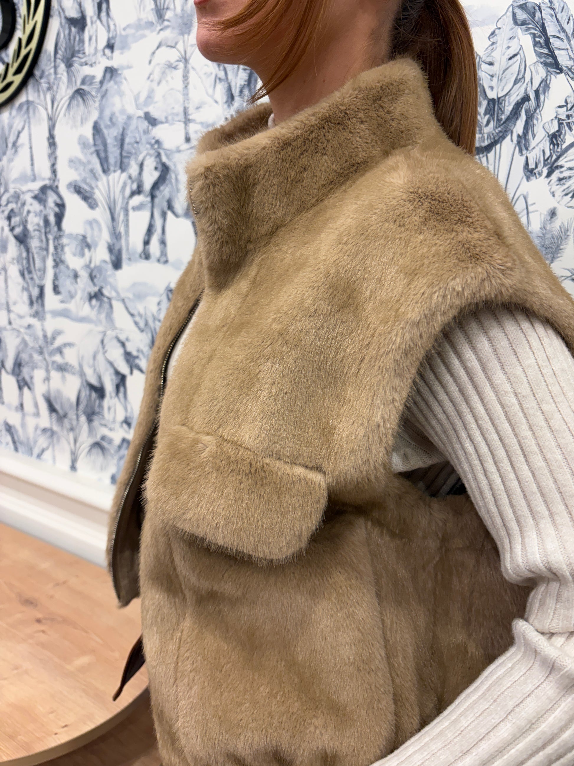 Gilet sans manches en fausse fourrure ultra douce, parfait pour réchauffer une tenue avec style.