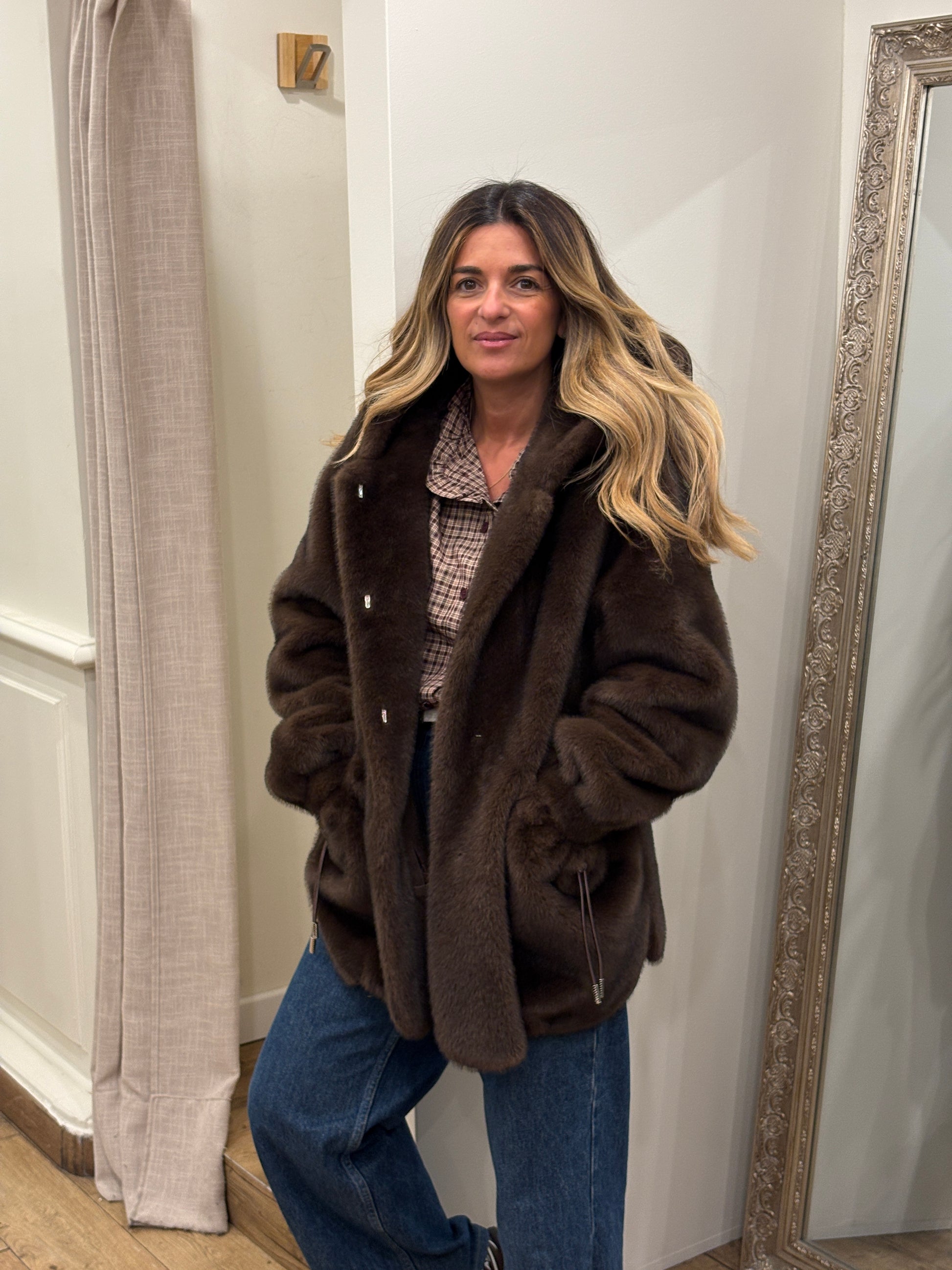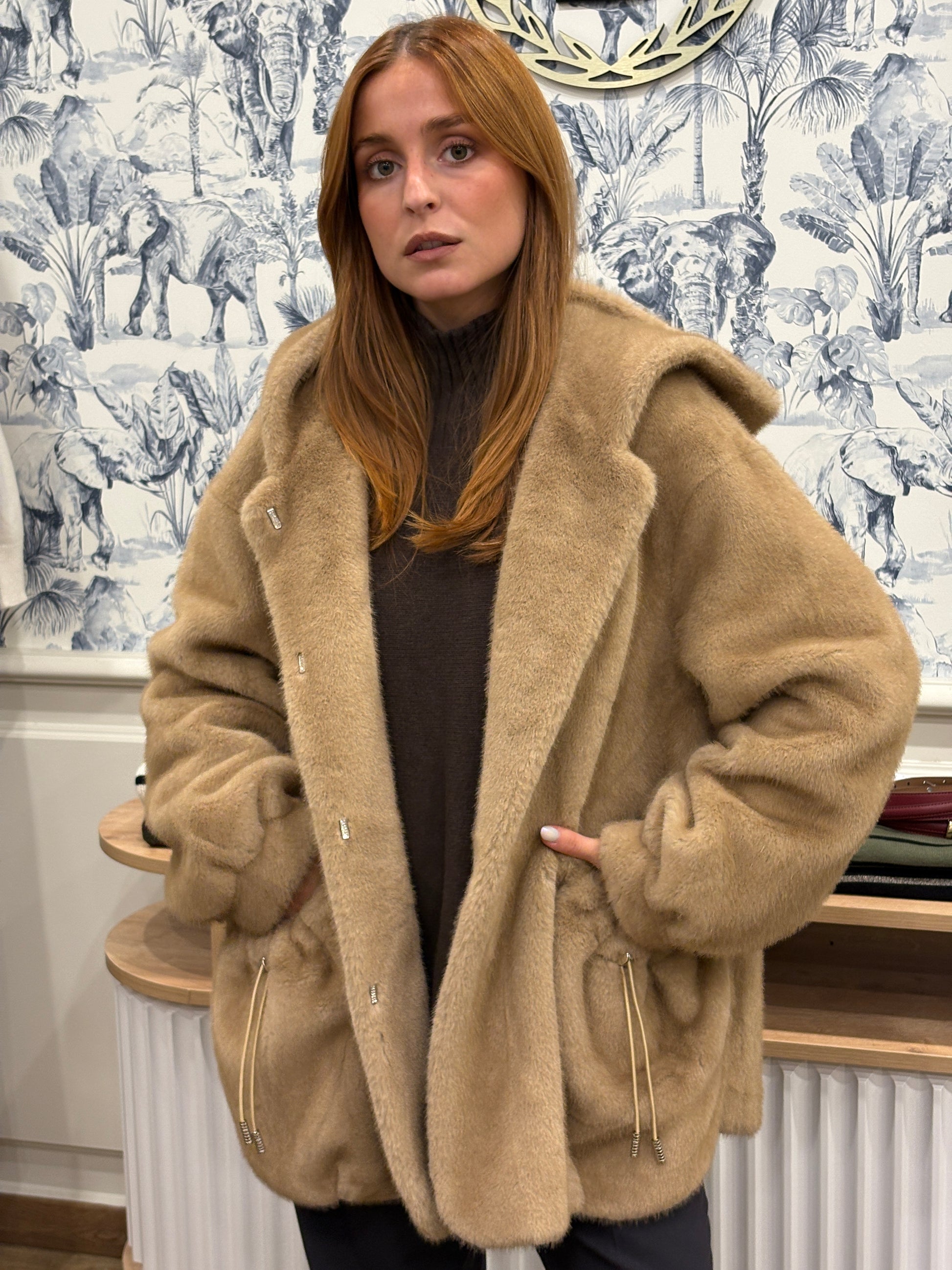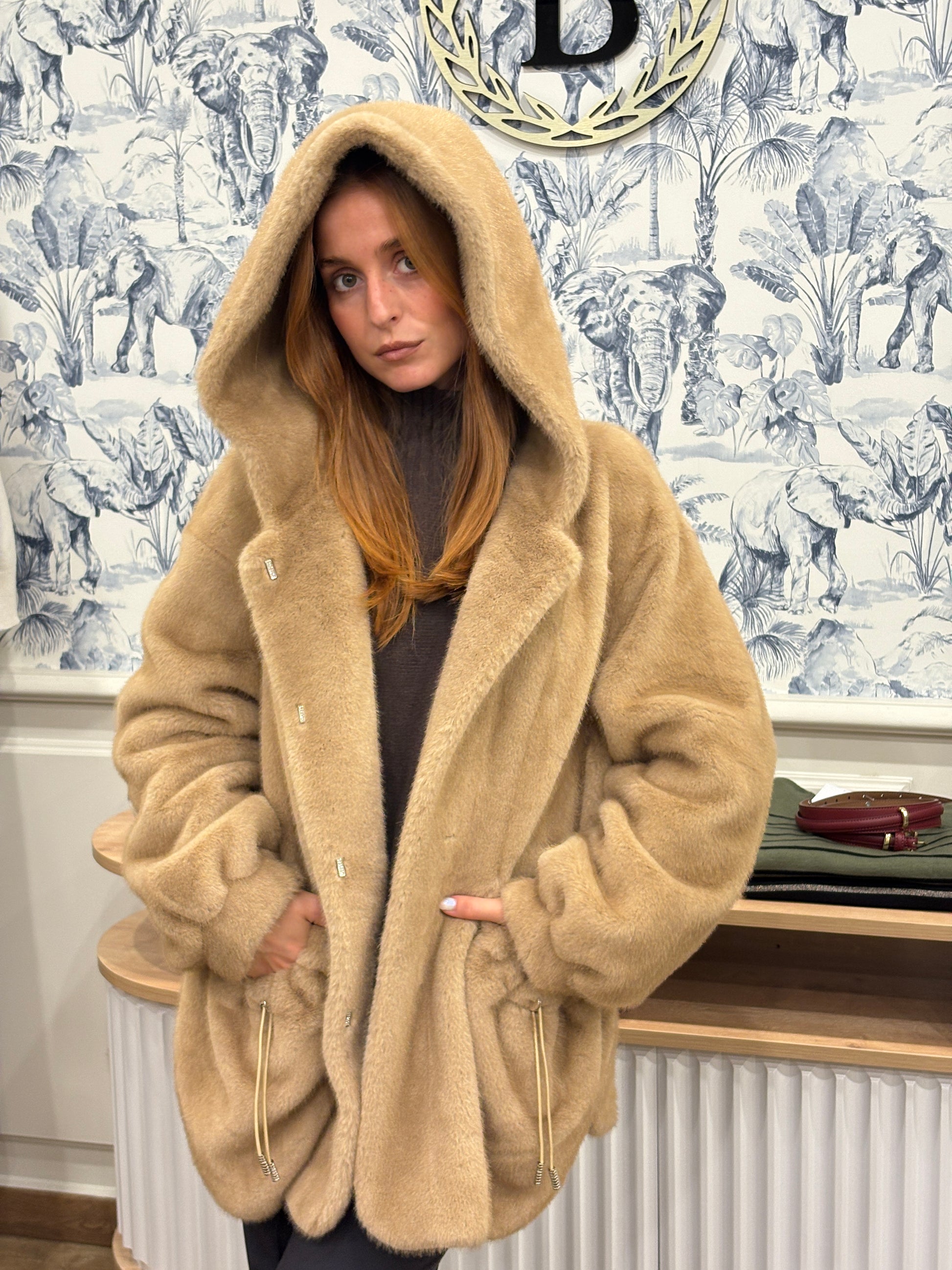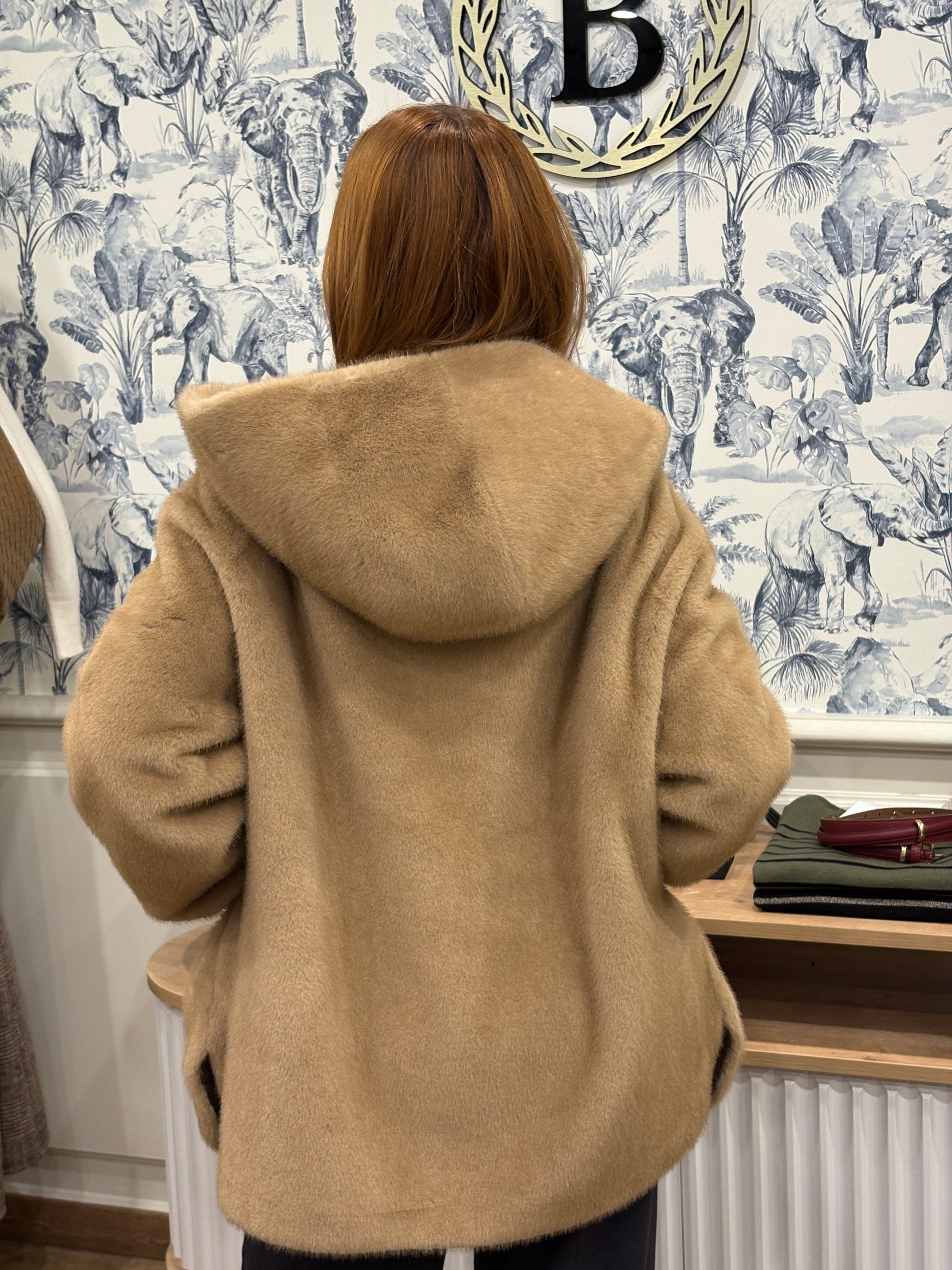 Douce et enveloppante, la veste Selena en fausse fourrure est la pièce cocooning par excellence. Sa texture soyeuse et son volume généreux apportent confort et élégance, tandis que sa capuche et sa coupe légèrement oversize lui donnent une allure moderne et décontractée.