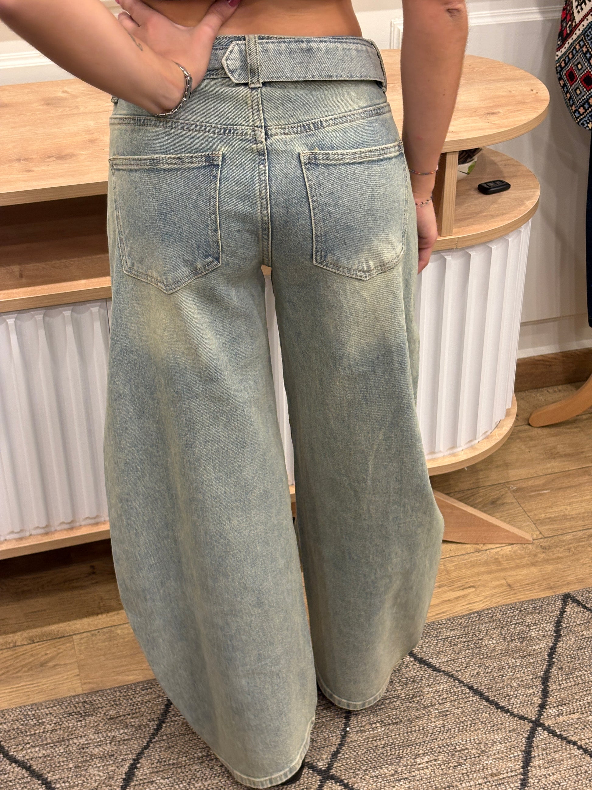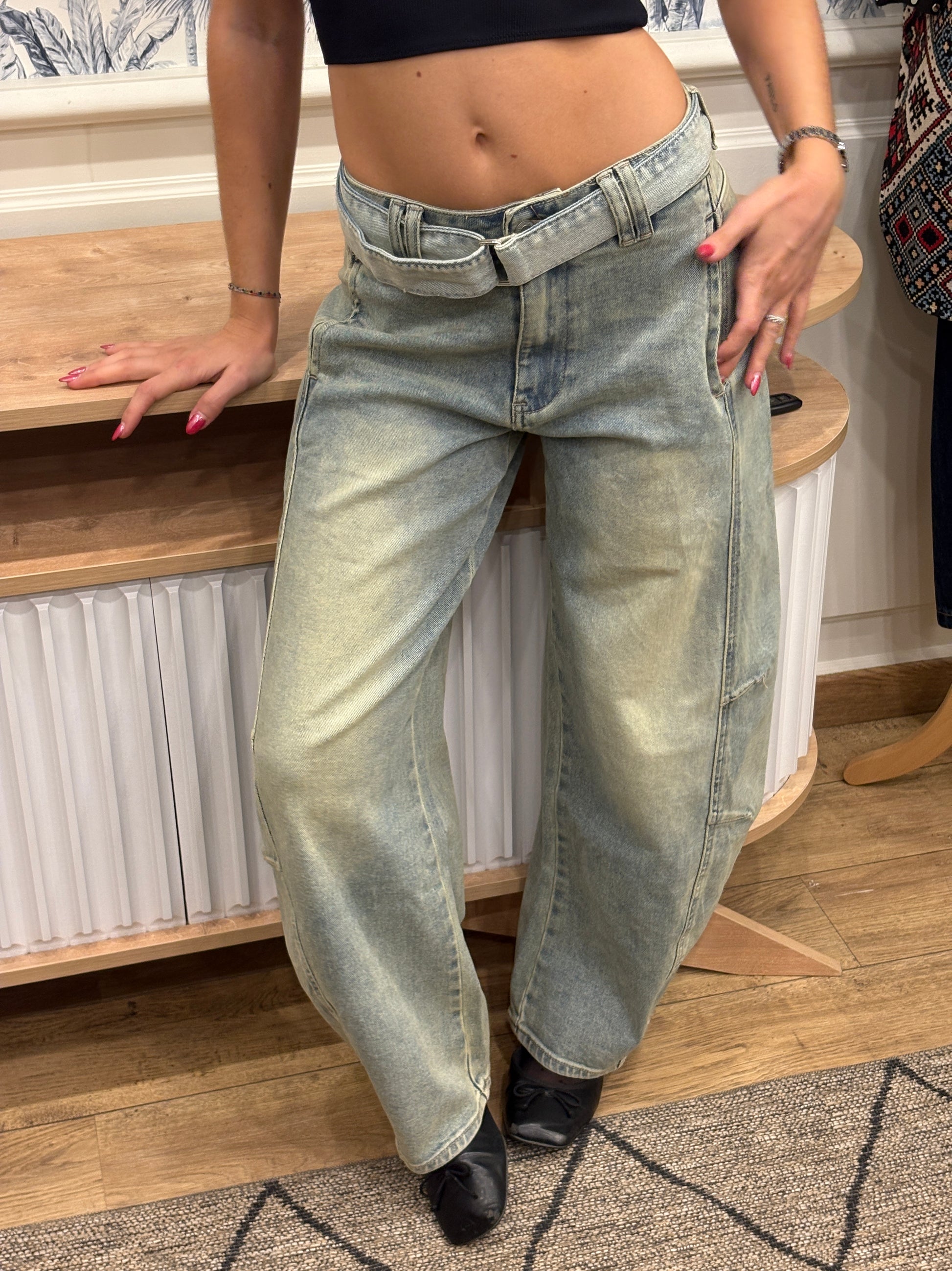 Détail : Ceinture ton sur ton intégrée à la taille, effet vintage grâce à son délavage travaillé.