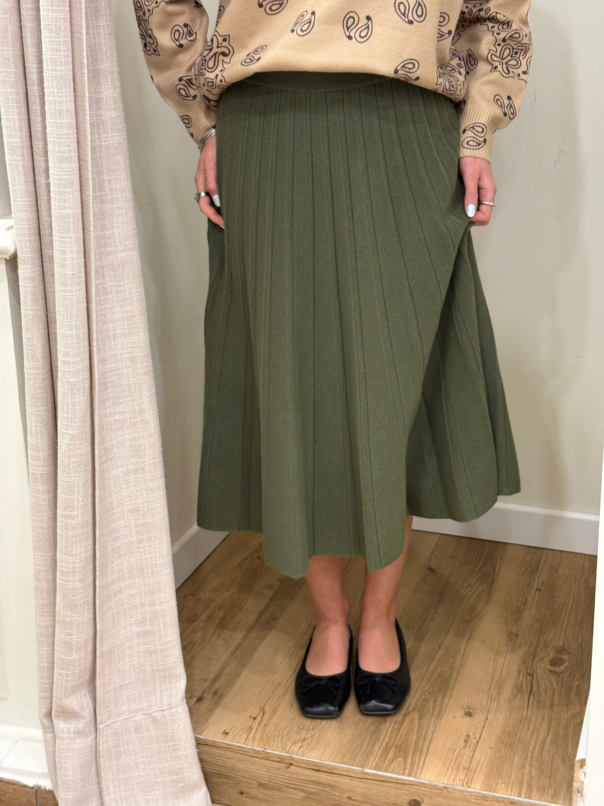 Coupe : midi, plissée, taille élastiquée