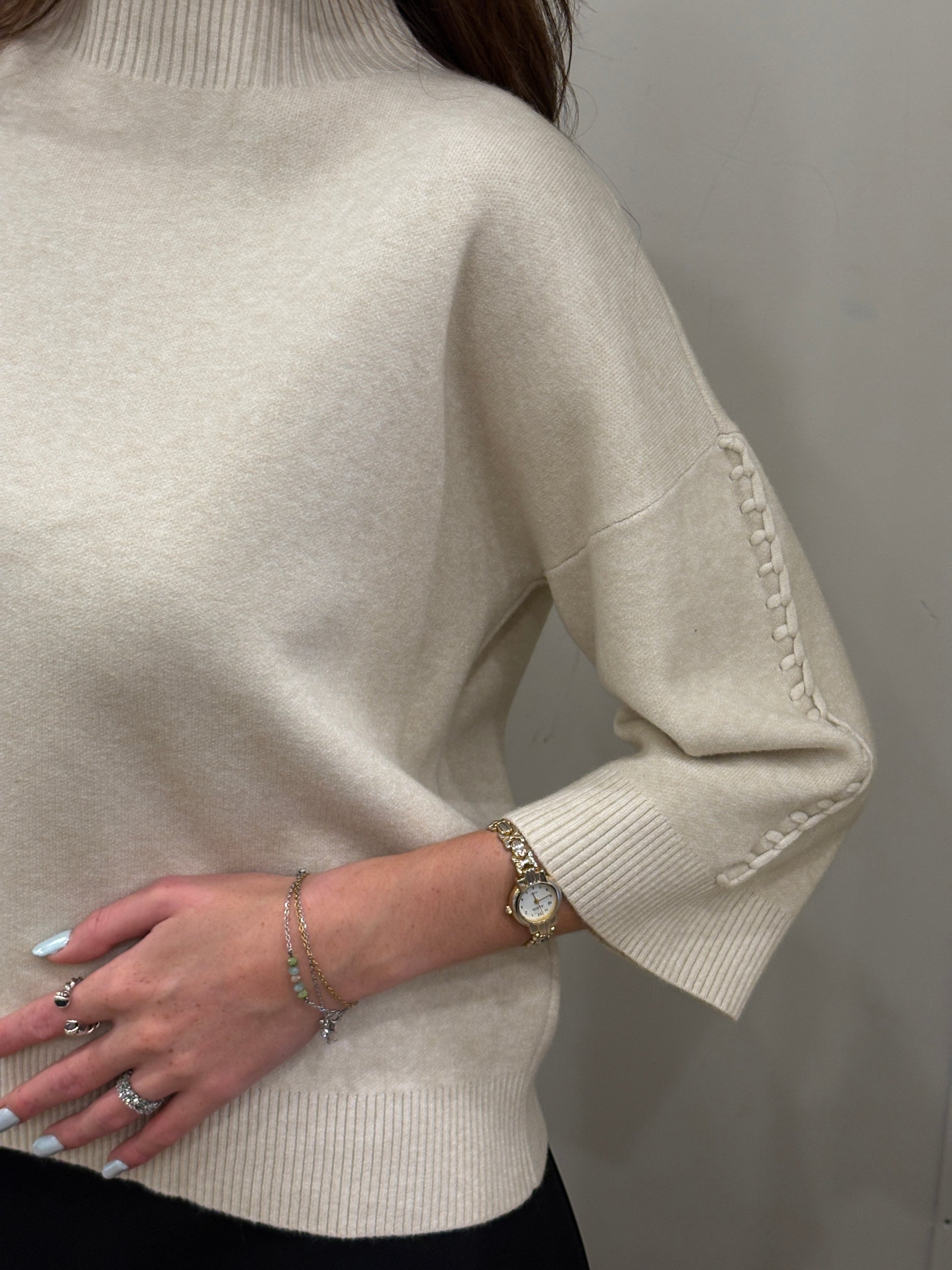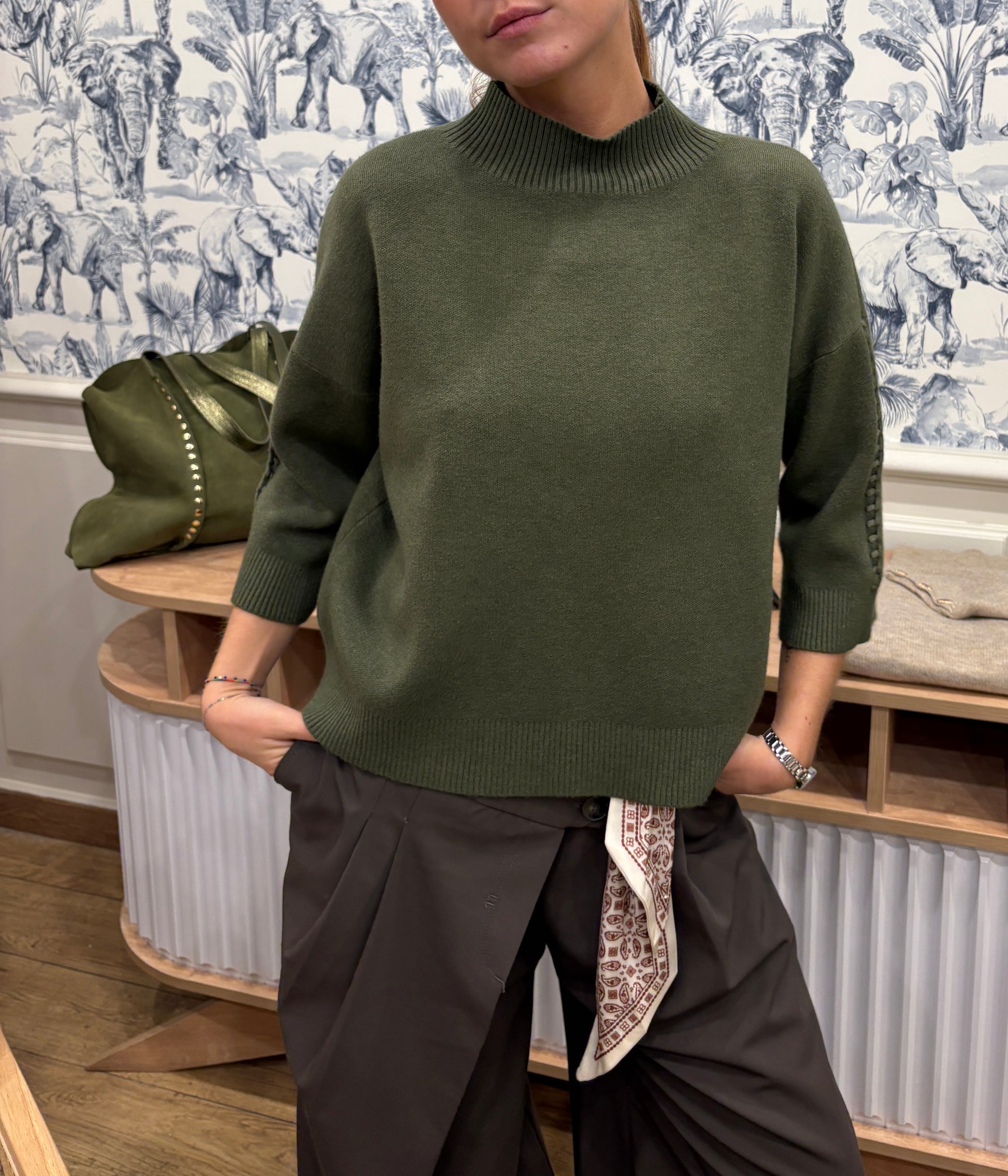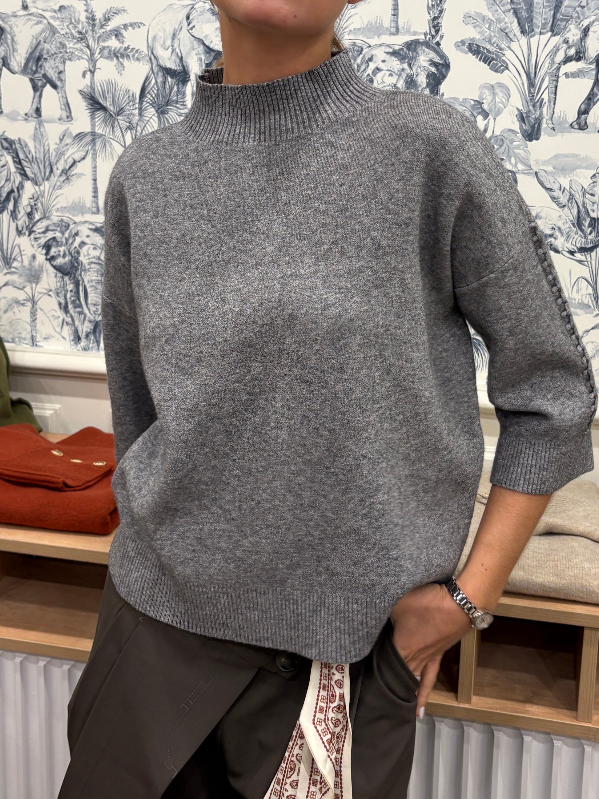 Un essentiel élégant avec ce pull à col montant et manches 3/4, parfait pour la mi-saison. Sa maille douce et ses détails tressés lui apportent une touche de charme et de féminité tout en restant confortable au quotidien.