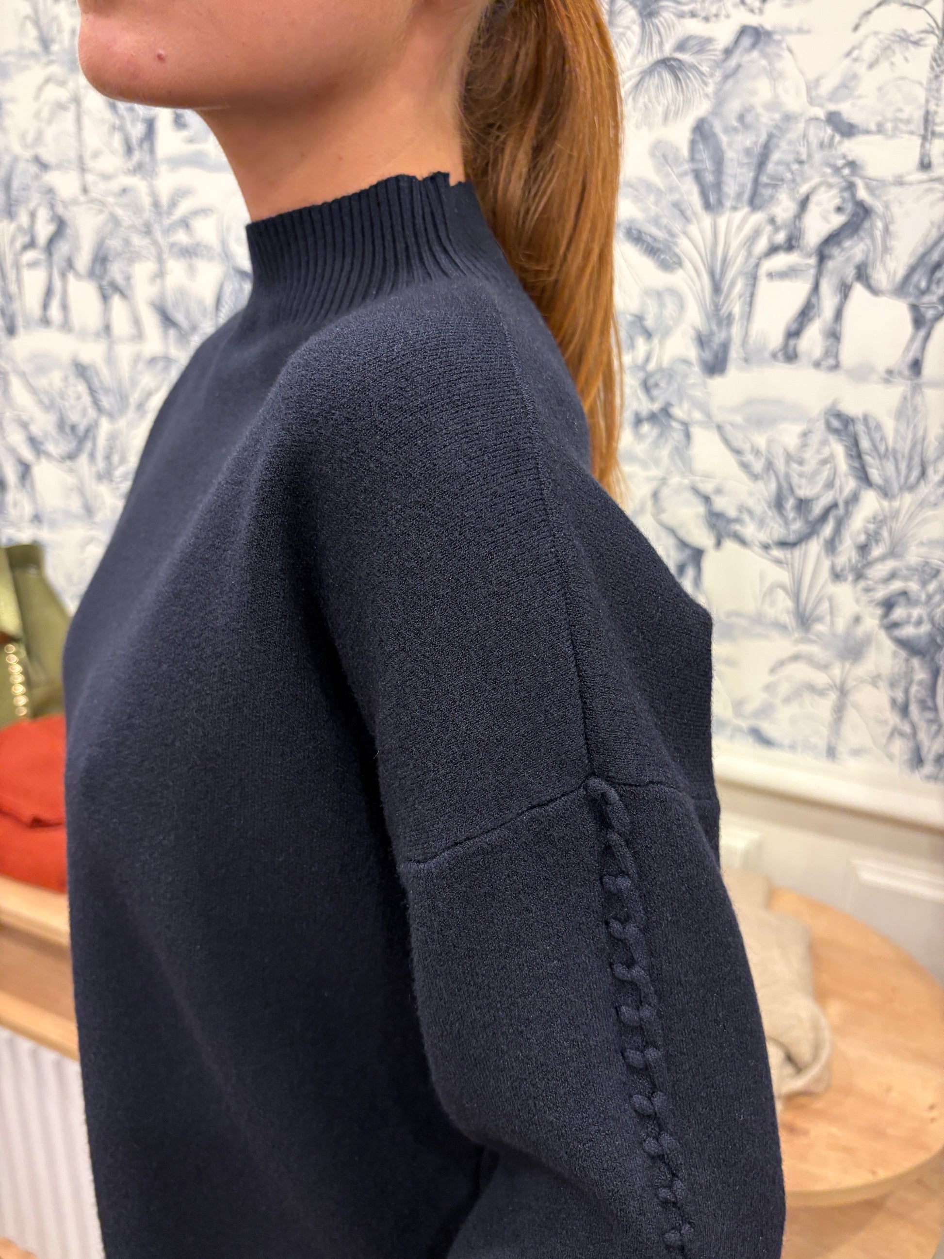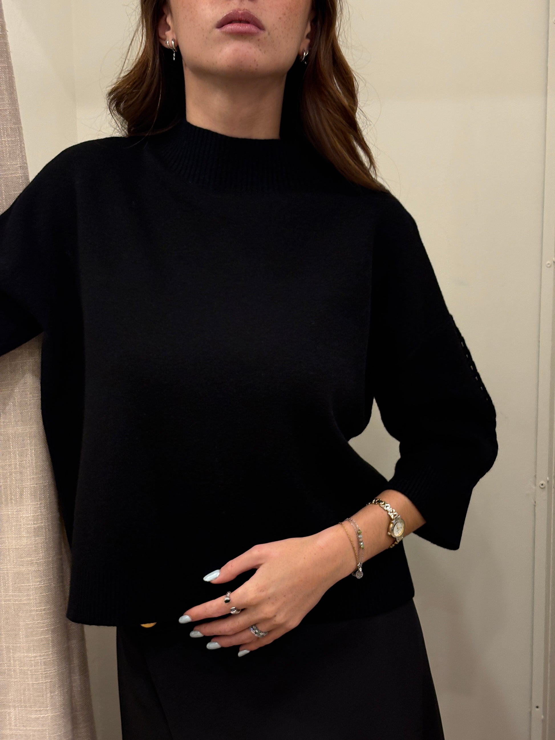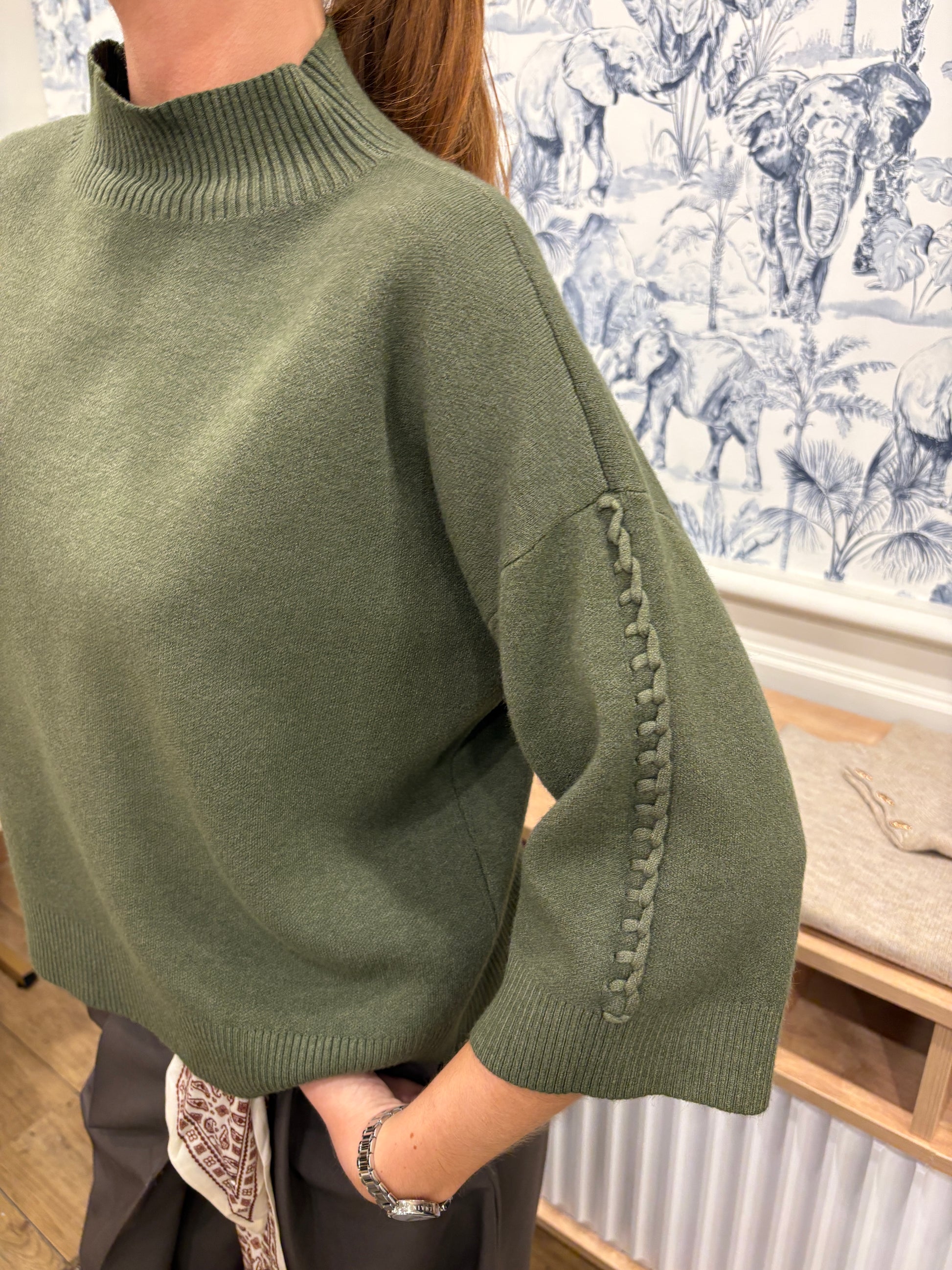 Un essentiel élégant avec ce pull à col montant et manches 3/4, parfait pour la mi-saison. Sa maille douce et ses détails tressés lui apportent une touche de charme et de féminité tout en restant confortable au quotidien.