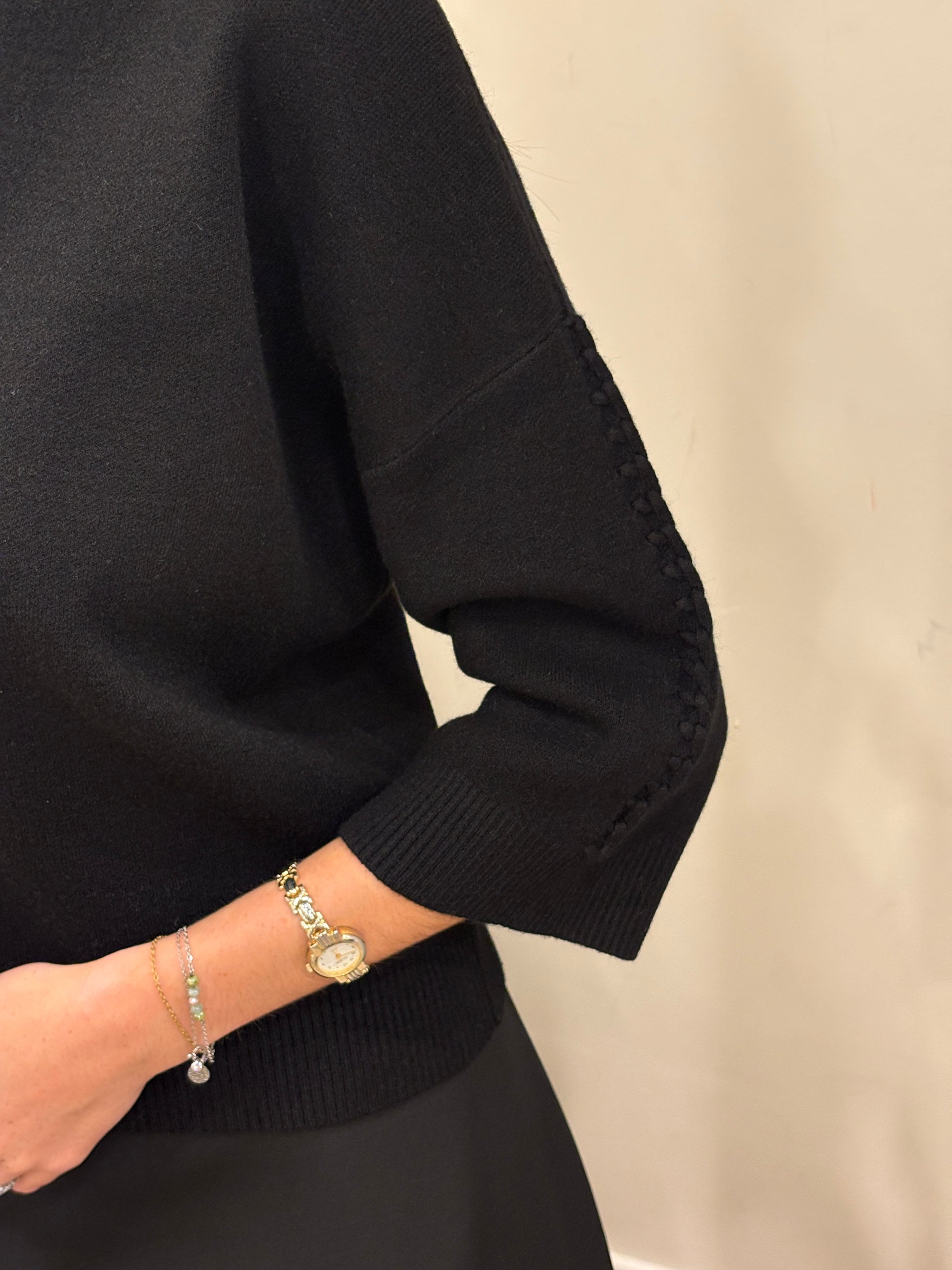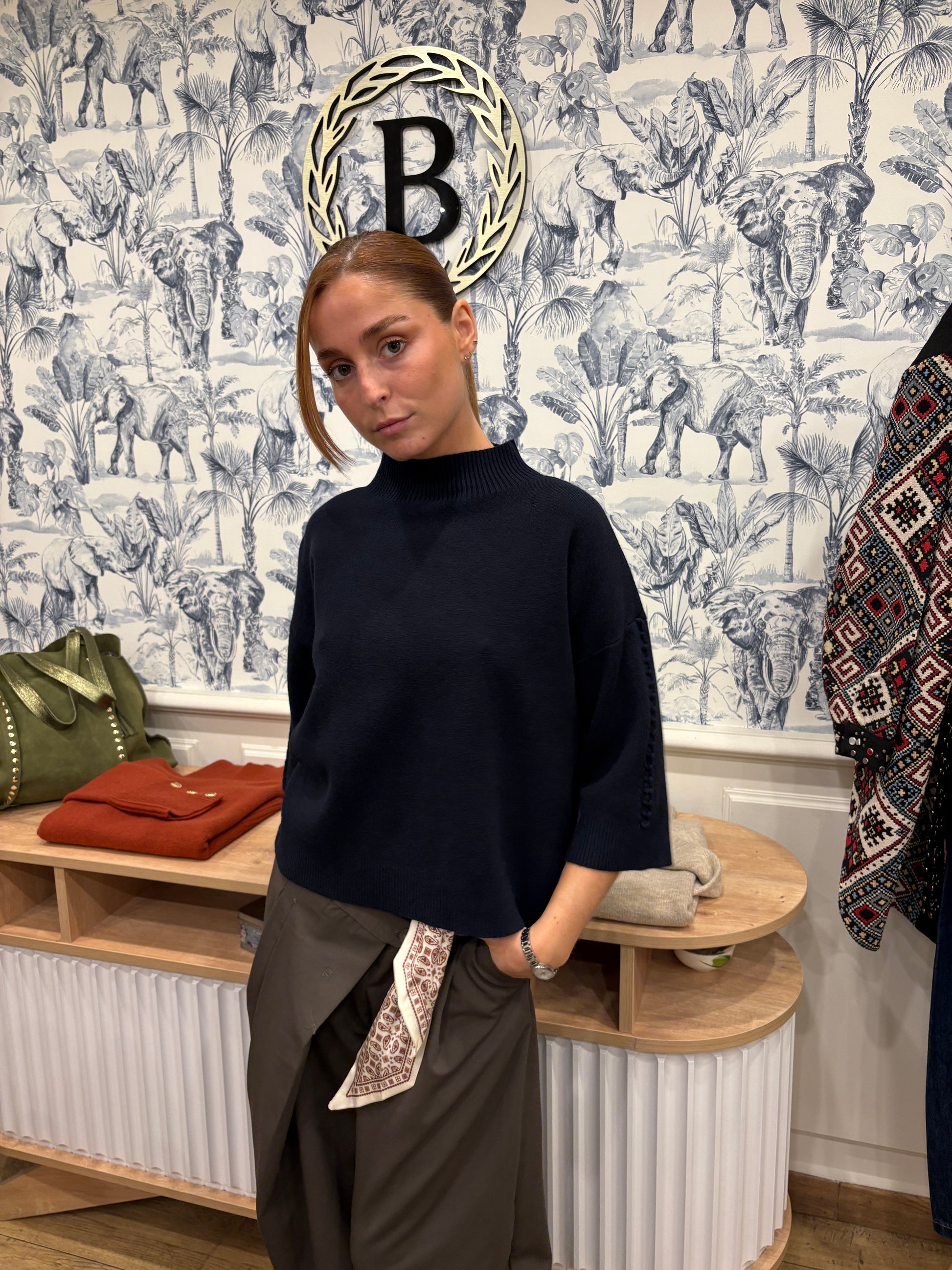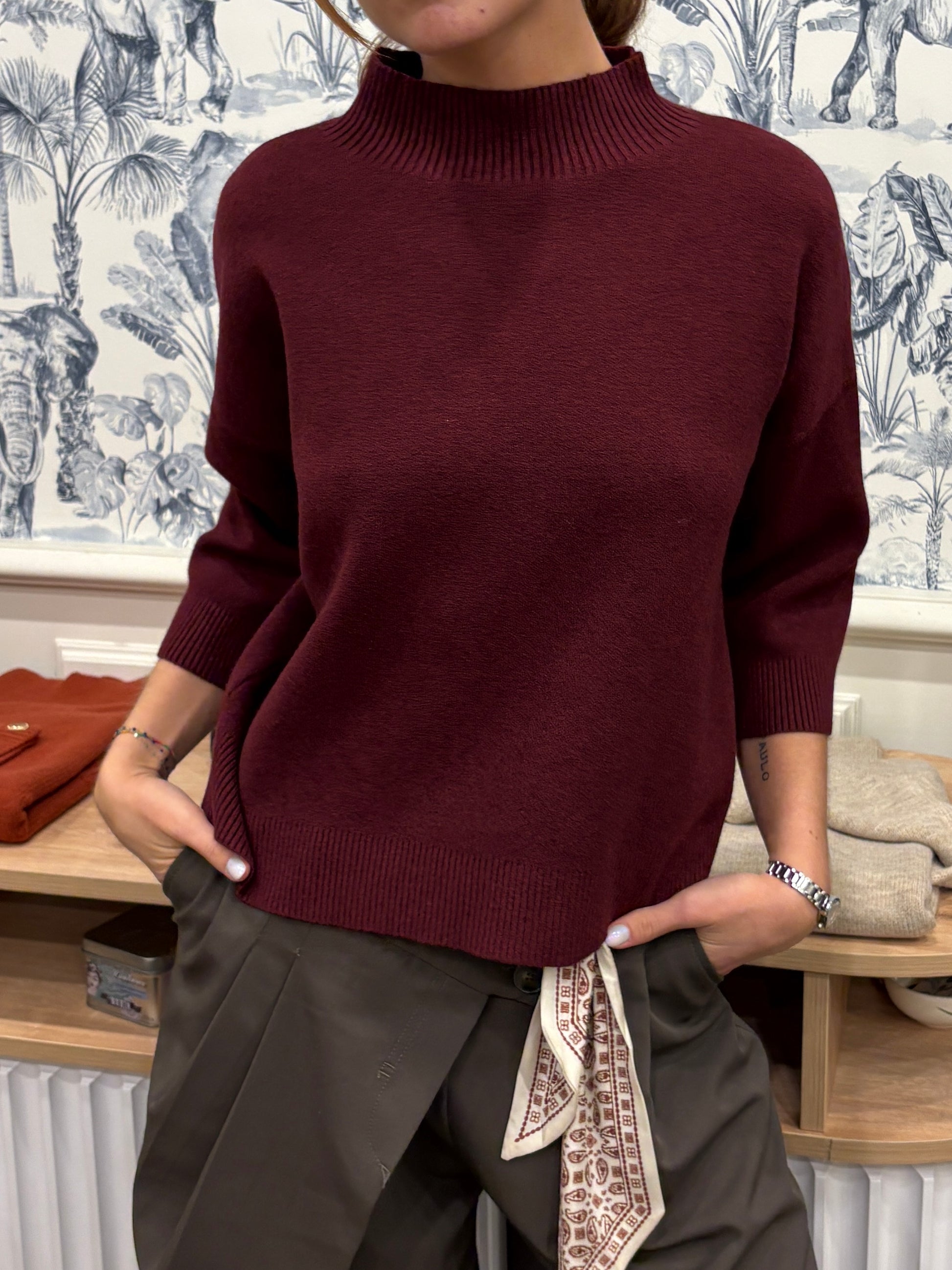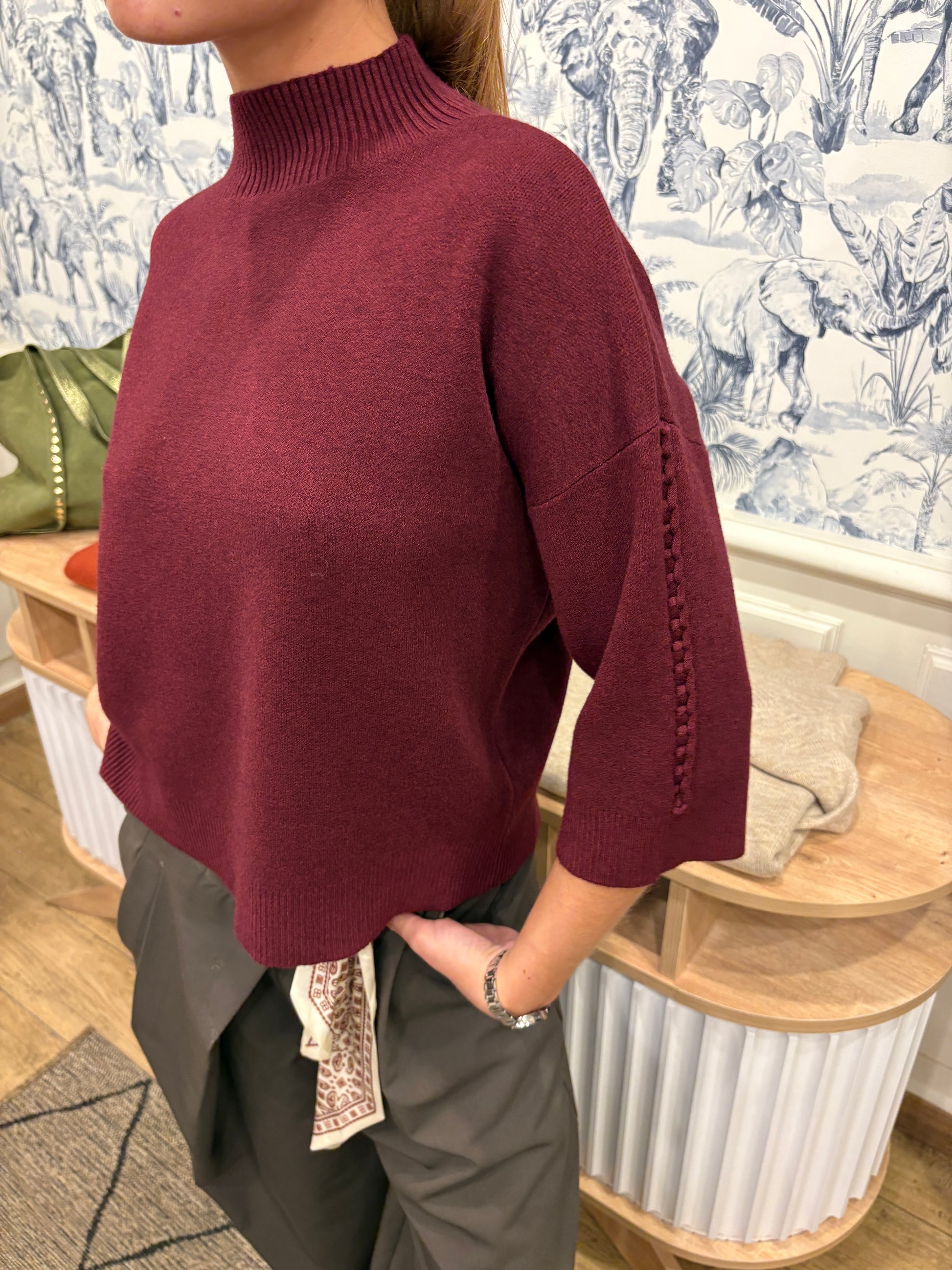 • Détails : col montant, manches 3/4, finition tressée discrète