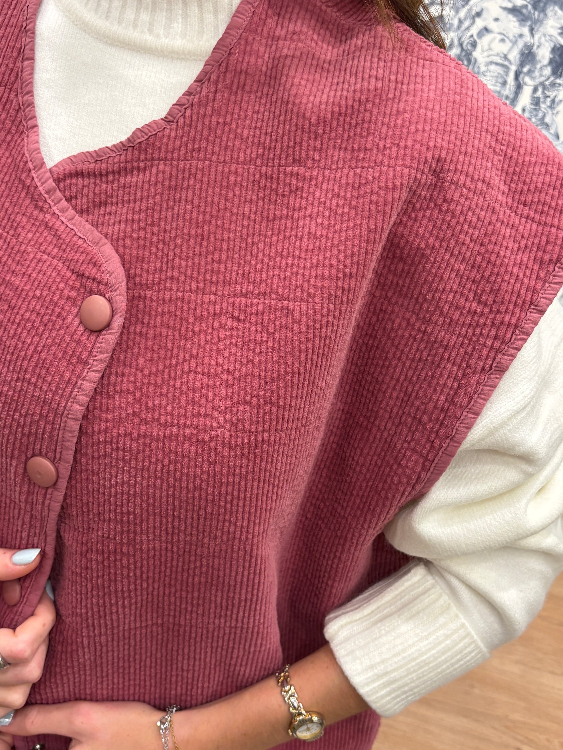 Une veste sans manches douce et réconfortante, confectionnée en coton côtelé pour une allure à la fois tendance et décontractée. Sa texture veloutée et sa coupe ample en font une pièce idéale pour la mi-saison.